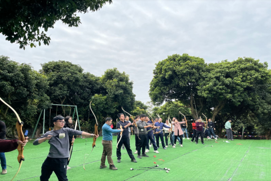 稍作休息后,下午1点,团队来到了熹乐谷温泉度假酒店附近的拓展基地。从开营破冰、热身、组队到接下来的各个体验项目,每一个步骤都充满了欢笑与挑战。大家通过一系列的开营活动,迅速拉近了彼此的距离,团队氛围愈发融洽。紧接着,团队秀、同心鼓、攻防箭和拔河比赛等团建活动轮番上演,每一位团队成员都全情投入,为了团队的荣誉而努力拼搏。特别是在攻防箭和拔河比赛中,大家的团队协作能力得到了充分的锻炼和提升。
